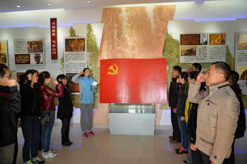上午,在马鞍山烈士陵园,广大党员寻访革命烈士遗迹。在纪念馆里,大家仔细观看烈士事迹,认真倾听讲解员介绍革命烈士浴血奋战的历史。最后,全体党员在纪念馆党旗前,举起右手庄严宣誓,重温入党誓词。大家表示一定要永远铭记革命先烈的丰功伟绩,发扬革命先烈的光荣传统,以革命先烈的大无畏精神激励自己,模范践行群众路线,争做党员先锋,为党旗增辉。