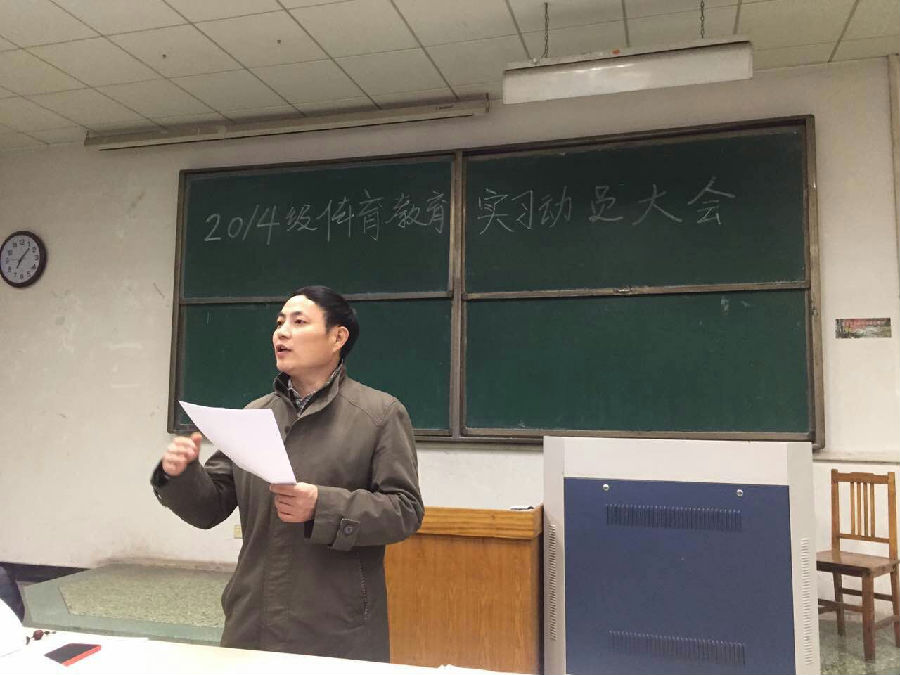 为确保体育教育专业教育实习工作的顺利开展,bw西汉姆联于2月27日晚上19:00在4号教学楼101教室召开了2014级体育教育专业教育实习动员大会。经理助理董杰老师、教学科长杨刚老师、实习指导教师和2014级体育教育专业全体员工参加会议。