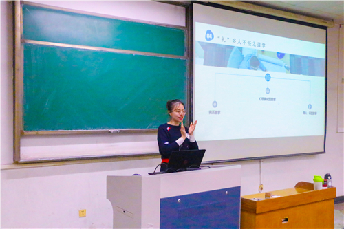 紧接着,她用幽默诙谐的语言及生动的现场演示相结合的方式向学们讲解了礼仪的含义、重要性以及基本礼仪的内容,并将其分为小生这厢有“礼”、“礼”之为何、表“礼”如一、“礼”多人不怪四方面对大家进行了讲解,将表“礼”如一细节分为仪容、仪表、仪态,“礼”多人不怪细节分为商务礼仪、课堂礼仪、邮件礼仪、电话礼仪等六个方面向大家进行了详细的讲解。