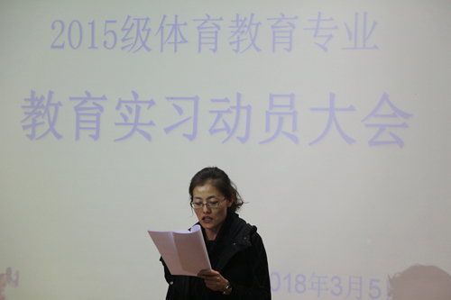 随后,韩军梅就教育实习的具体环节和部署安排情况进行了通报,就实习的各个环节,实习任务的分配以及实习点的安排等问题进行了详细讲解。