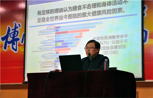 会议伊始,马国栋提出问题“为什么现代人需要科学锻炼指导?”让在场师生思考。他讲到,现代生产方式和生活方式的改变,给人类生活带来便利的同时,也使人们在日常生活中体力活动和走路的机会越来越少,在现代快节奏的生活中,成人及青少年儿童肥胖率持续上升,如何预防和解决肥胖带来的疾病已经成为至关重要的事情。接着他详细讲解了肥胖的判断及产生肥胖的因素,如何科学减肥和控制体重,如何科学健身。他强调适宜的运动有利于降低心脏病、中风、高血压等心脑血管疾病的发病率,科学体育运动可以提高人们的生活和生命质量。
