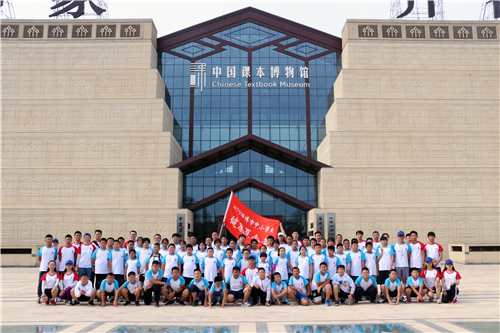 中国课本博物馆从1862年至今各个历史时期的中小学课本为主要藏品,博物馆内分为“办新学”、“上学堂”、“大后方”、“新中国”、“公社好”、“数理化”、“学工农”、“拼高考”、“新世纪”、“新课本”十个板块,以场景重现的模式,展现了从1862年京师同文馆的建立开始到电化教学,各个历史阶段的学习场景和课本图书。在讲解员的带领下,成员们了解了中国近百年间的课本发展史,感受到一件件实物所呈现出的历史的厚重、中华的崛起,革命前辈认真读书、潜心求学的情形也引起了队员们的浓厚兴趣。参观完毕后,实践团成员进行了合影留念。