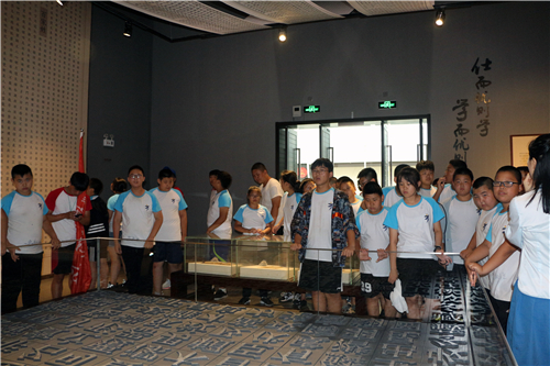 中国课本博物馆是国内首座课本主题专业博物馆,进入大厅后,讲解员带领实践团成员和夏令营员工参观了唯美时代油画精品展。走上二楼从活字印刷术开始,员工的课本博物馆之旅正式开始。在中国课本博物馆讲解员带领下,从千字文、百家姓到学堂的发展史,队员们听得聚精会神。