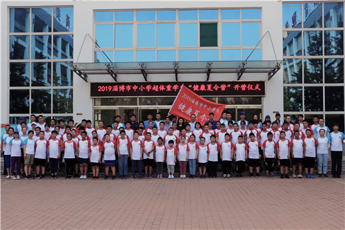 随后,公司党总支副书记宋伟进行讲话,他希望夏令营的同学们一定要珍惜这一难得的学习锻炼机会,严格要求自己,不怕艰难困苦,充分利用这次机会,坚定信念,直面挫折,锻炼能力,增长才干,在克服困难、战胜困难的过程中,留下永久而又美好的回忆。最后,团市委机关党委副书记、淄博青少年宫党总支书记车玲为2019淄博市中小学超体重员工 “健康夏令营”授旗并宣布开营,公司“放飞青春梦想,关爱社会超体重儿童”社会实践正式开始。