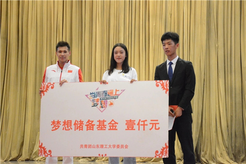 随后,为鼓励老员工勇敢追逐梦想,现场邀请了10名有梦想的2019级新生登上舞台,分享自己的梦想:有同学想成为特种兵,有同学想成为光荣的人民教师,有同学想考研深造,有同学以张成龙为榜样,想站在最高的领奖台上……张成龙一一进行点评,引导同学们前行的方向并总结:“青年要树立远大理想,对自己严格要求,超越自我,将一点一点的小目标积累起来,滴水穿石,最后一览众山小。”张成龙将签字留念作为对同学们梦想的见证,并现场抽取到一名幸运同学,亲自为其颁发校团委设置的1000元梦想储备基金,助力梦想实现。活动在热烈的掌声中落下帷幕。