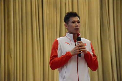 张成龙以《坚持·无悔》为主题,以自身重要人生节点为时间轴开启梦想公开课。他讲到,梦想是坚持前行的强大动力,自己6岁开始接触体操,正是梦想的激励与亲人朋友的鼓励支撑自己一路前行坚持到现在已24年。他也指出,逐梦的路途中有鲜花有荆棘,欲带皇冠,必承其重,不要惧怕失败,失败是成功的契机,输不可怕,可怕的是怕输。他向大家分享自己如何克服追梦过程中经历的挫折与困难:2009年全运会痛失冠军,4年努力烟消云散,深深的挫败感笼罩心头,他一边鼓励自己“人生不可能一帆风顺,有成功就有失败”,一边顶着巨大的压力更加刻苦训练。终于付出终有收获,仅 2010年一年张成龙就斩获10枚金牌,并在2012年伦敦奥运会中荣得体操男团金牌。他总结了三个关键词分享给大家:一是梦想,种下梦想的种子,用努力和坚持点燃梦想之火;二是榜样,给自己找榜样,为他人树榜样;三是感恩,滴水之恩,涌泉相报。最后他引用习近平总书记讲话中的“使命在肩,奋斗有我”结束此次演讲,掌声经久不息。