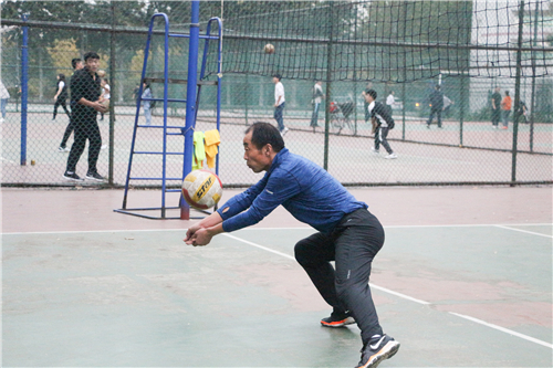 此次比赛采用三局两胜制。赛前,双方队员提前入场进行热身活动时,热身完毕后双方合影留念,与此同时,赛场周围早已人头攒动,观众们翘首以待。热身完毕,随着一声哨响比赛正式开始,员工队率先发球,教师队严阵以待,双方迅速进入比赛状态,目光“牢牢抓住飞速的排球,队员们一个个精彩而又华丽发球、扣球引起场上的阵阵欢呼。第一局比赛员工队以25-23险胜一局,率先获得一分。中场休息时,教师们寻找配合中存在的问题,积极调整战术。接着,第二局比赛开始,由教师队发球,并率先拿下一分,教师队越战越勇,以25-10的大比分获得第二局的胜利。最后,进行第三局决胜局,双方队员虽然已经筋疲力尽,但依然斗志昂扬,精彩的发球、扣球、拦网接连不断,教职工队以25-18的比分获得此次比赛的胜利。赛后双方进行握手示意,教师们对同学们进行相关战术指导,并给予鼓励。