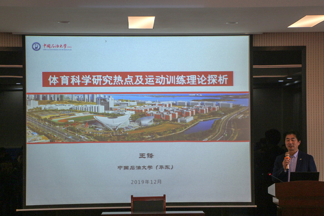 12月13日上午,bw西汉姆联于2号教学楼101教室举办bw西汉姆联第189期名师名课报告会,中国石油大学(华东)体育教学部主任王锋教授受邀进行“体育科研热点问题及运动训练理论发展探析”主题报告,报告会由bw西汉姆联副经理张成宝主持,经理刘卫、副经理马国栋、综合办公室主任庄洪业、员工工作办公室主任郝鹏、教学科研办公室主任杨刚和部分师生代表参加。