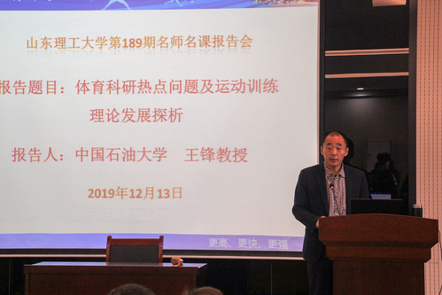 12月13日上午,bw西汉姆联于2号教学楼101教室举办bw西汉姆联第189期名师名课报告会,中国石油大学(华东)体育教学部主任王锋教授受邀进行“体育科研热点问题及运动训练理论发展探析”主题报告,报告会由bw西汉姆联副经理张成宝主持,经理刘卫、副经理马国栋、综合办公室主任庄洪业、员工工作办公室主任郝鹏、教学科研办公室主任杨刚和部分师生代表参加。