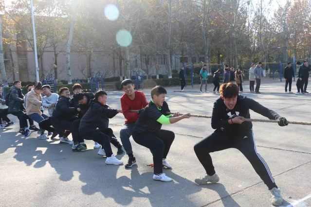 此次比赛由老师和同学们共同担任裁判。参赛队员以各年级不同专业为单位,共八支队伍,每支队伍十五个人,十个男生,五个女生。拔河不仅为冬天增添了运动气息,也在无形中拉进了同学之间的距离,增加了师生间的感情。
