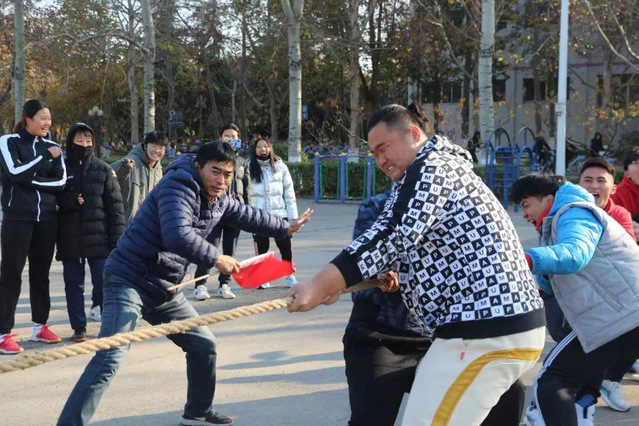 此次比赛由老师和同学们共同担任裁判。参赛队员以各年级不同专业为单位,共八支队伍,每支队伍十五个人,十个男生,五个女生。拔河不仅为冬天增添了运动气息,也在无形中拉进了同学之间的距离,增加了师生间的感情。