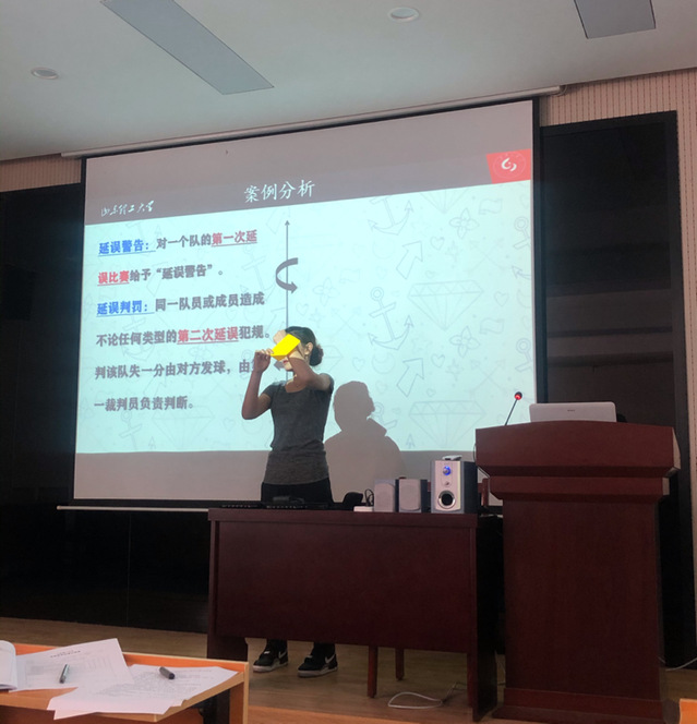 孙粼婧教师通过挖掘排球课程教学思政元素,以中国女排精神为主线,对排球运动发展过程中新增加的“自由人”角色,进行了细致讲解,进一步诠释了中国女排精神的热爱国家,敢于拼搏,任劳任怨,永不言败的精神实质。将理论和实际相结合,激发了“员工”学习的兴趣。