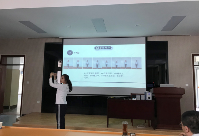 孙毅教师从回顾复习上次课学习内容开始,对第三套大众一级健美操的动作组合进一步学习。带领大家从准备活动到放松活动,对灵活优美的健美操动作进行了讲解,课中精准的示范动作与准确的语言表达,带给“员工”更直观的体验。