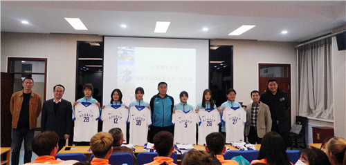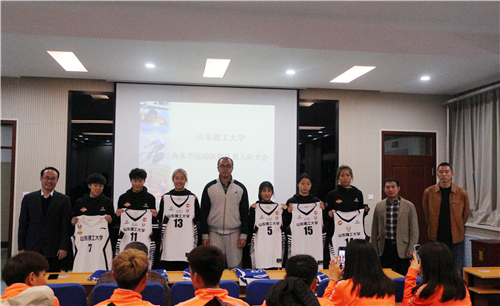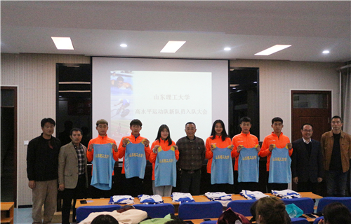 盛红庆首先介绍了高水平运动队的基本情况以及近几年取得的成绩,并宣读新入队队员名单,在热烈的掌声中,新队员依次上台领取队衣、合影留念。
