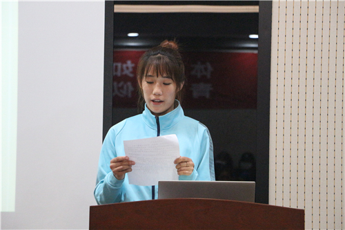 老队员代表李进发言中表示大学是一个全新的起点,需要更加努力地把握每一次训练,牢记入队初心,增强自身素质,努力为公司公司争光。新入队队员代表徐明睿表态发言,她表示将严格遵守校规校纪和训练要求,认真学习,刻苦训练,以严肃的态度来对待训练和学习,实现自身的不断超越。