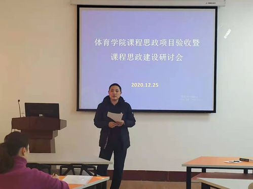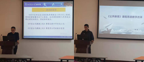 紧接着,《中国古代健康文化》课程思政项目主持人张保国和《公共体育》课程思政项目主持人郭涛依次采用PPT形式对各自项目的实施过程、建设情况、完成情况、取得成效与不足等方面进行了详细汇报。