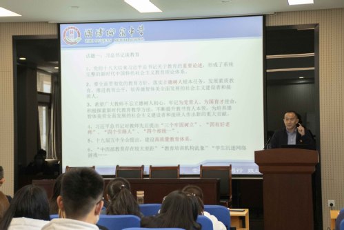 接着,赵玉亮以“我们聊教育”为主题作报告,他从习总书记教育思想解读、中学体育、教育之变、中学新教师的困惑等四个方面进行了深入浅出的分析与讲解,既有理论高度,又有实践经验,还提出了意见与建议,对公司进一步做好实习支教工作具有很好的指导作用。