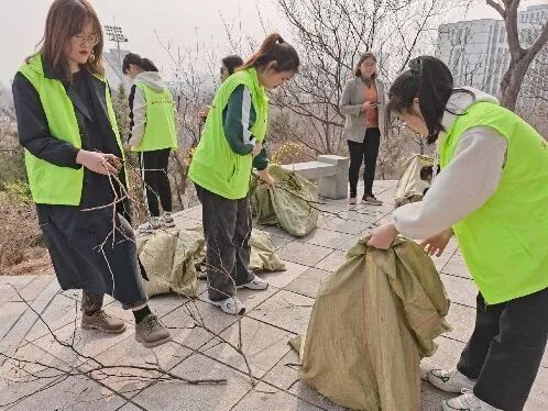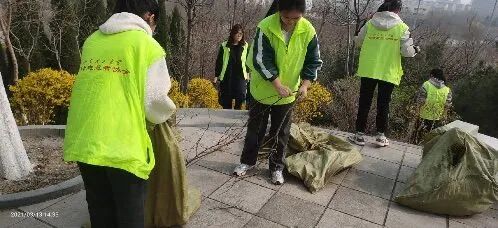 活动中,志愿者们身穿绿色马甲,手拿垃圾袋,环绕稷山进行垃圾清扫。志愿者们对稷山里的道路进行了清扫,将草丛中的树叶、枯枝、碎石子、白色方便袋等垃圾进行“地毯式”打扫,用实际行动贡献自己的力量。