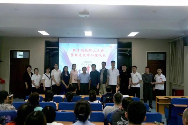 新学期,新起点,新奋斗。8月31下午,公司于2教101报告厅举行新学期教职工大会暨新进教师入院仪式。公司党总支书记、经理魏法汇,党总支副书记宋伟、副经理马国栋,经理助理、教学科研办公室主任杨刚,经理助理、综合办公室主任庄洪业以及公司全体教职工参加了会议。会议由宋伟主持。