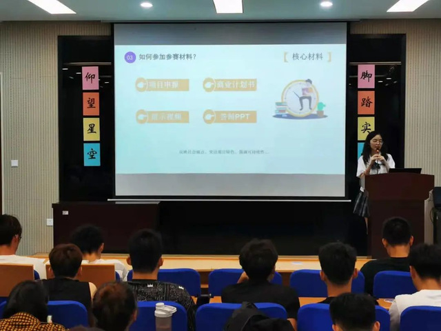 本次宣讲分为两部分,首先由孙宇腾同学对挑战杯竞赛的赛事章程、作品类别、申报要求及收获、老员工竞赛概况等方面进行详细的介绍。孙宇腾向同学们介绍了关于挑战杯赛事的相关知识与竞赛流程,并围绕“老员工挑战杯是什么”、“为什么要参加”、“参加后应该怎样去做”三个问题与同学们展开讨论。他表示参加“挑战杯”大赛,对于提高我们的创新创业能力、增强团队的合作意识,有着巨大的帮助。