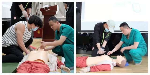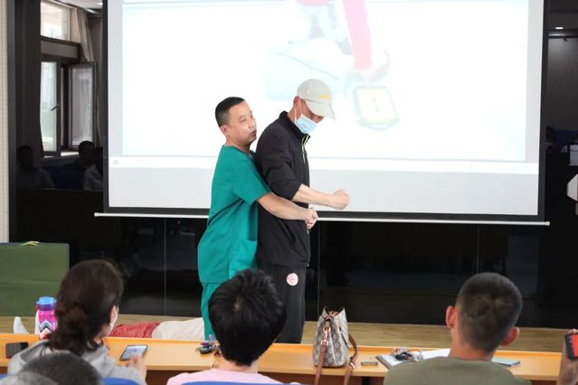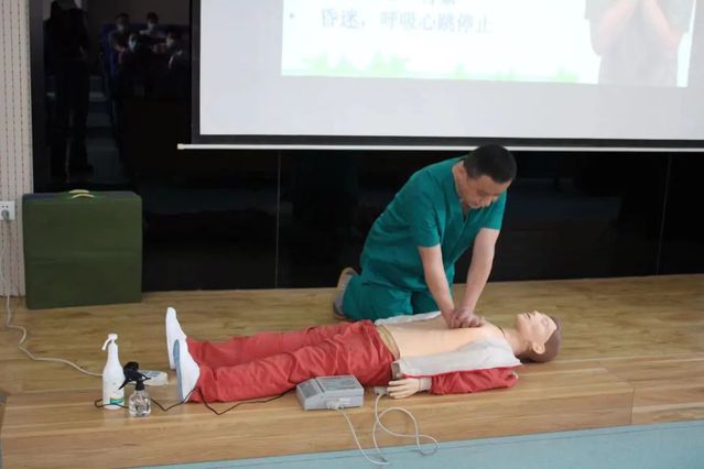 此次培训采取“理论培训+情景模拟”的模式结合展开,培训医生介绍了日常生活中常见意外突发情况的预防措施和处理办法、心肺复苏的基本流程,着重讲解了心肺复苏技能中的呼吸判断、连续胸外按压等技能,强调了心肺复苏按压的注意事项,并观看了正确使用自动体外除颤仪(AED)的教学视频。为帮助师生充分掌握相关技能,指导医生利用模拟人演示了心肺复苏的手法及动作要领,并按照呼救方式、抢救体位、心肺复苏的急救顺序,详细讲解了急救过程中的重点难点和突发情况处置办法。在演练环节中,指导医生及时纠正了师生“实战”操作过程中出现的问题并作出正确示范。培训结束后,师生纷纷表示受益匪浅。