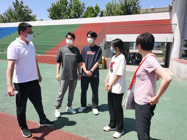 魏衍鹏介绍了实习生管理情况,实习生住宿、生活和工作条件等。王春龙从实习生参与或承担体质测试、课堂教学、体育器材维修、阳光体育节裁判、抗疫志愿服务、校园巡逻值班,体育教研活动等方面对实习生近三个月的实习工作进行了详细展示与汇报。