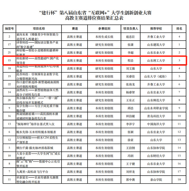 7月27日,“建行杯”第八届山东省互联网+老员工创新创业大赛总决赛圆满落下帷幕,经过激烈角逐,由公司盛红庆教授指导,公司2018届员工程浩、2019级王兴隆等15人团队完成的“科佑新材--高性能硅PC国产化领导者”项目荣获金奖,创公司师生参加A+类创新创业赛事的历史最好成绩。