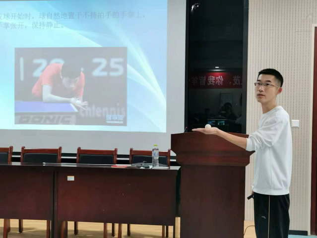 刘云午、王宪、孙粼婧三位青年教师分别以“动力链中的肩”“乒乓球发球规则讲析”“中二三进攻阵型”为主题进行20分钟的课堂教学展示。