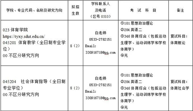 2023年体育专业硕士招生简章