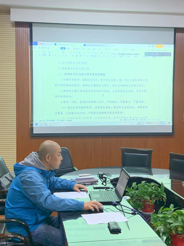 会议伊始,杨刚介绍了公司党委副书记邓昌亮来公司调研员工体质健康测试工作情况,并重点强调了预防校园体育运动意外伤害的重要意义;随后张鹏老师与全体老师共同学习讨论了《校园体育运动意外伤害事故应急预案》。
