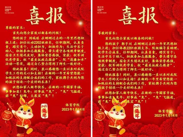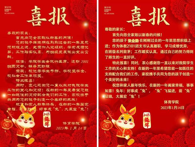 兔年喜报传 家校心连心