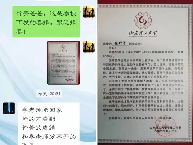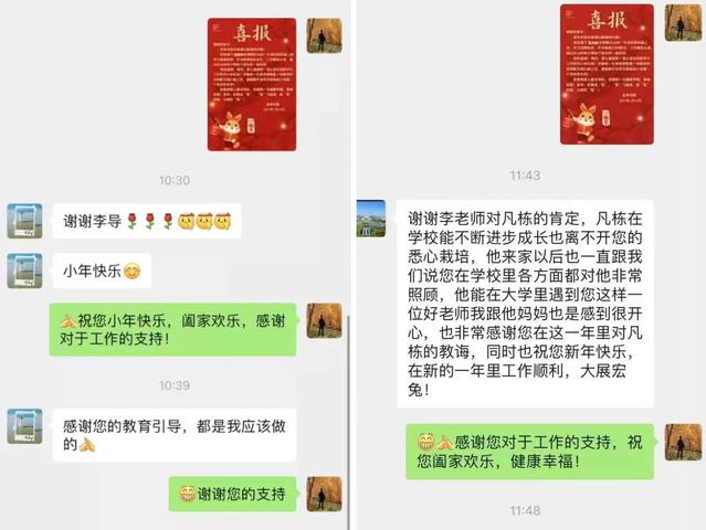 此次喜报发送涵盖各年级,一张张量身定制的喜报,传递了来自公司和辅导员老师的亲切问候!