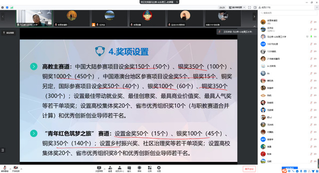 紧接着,马立修介绍了“互联网+”老员工创新创业大赛的背景以及相关政策,仔细向大家讲述了参赛要求与比赛内容规则,并对此次赛事提出三点要求:“以赛促教、以赛促学、以赛促创”,来作为主要目标,呼吁同学们要以社会需求为切入点,发挥想象力和创意性,寻找自己的参赛项目。