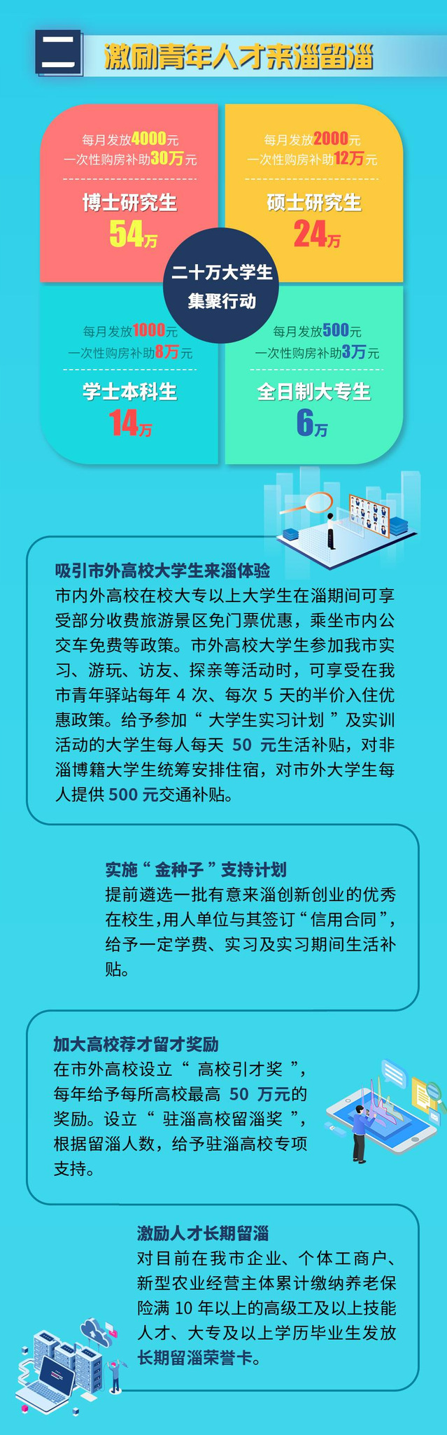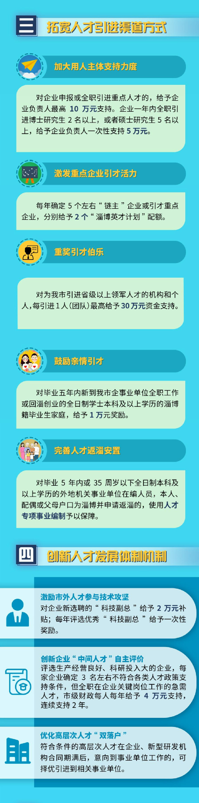 为持续保持淄博人才政策创新性和竞争力,实现人才政策“最优加一点”。近日,淄博市对“人才金政37条”进行升级完善、提标扩容,出台《关于加强新时代淄博人才工作若干措施》(简称“淄博人才金政50条”),为各类人才在淄创新创业、居住生活提供全方位政策支持保障。