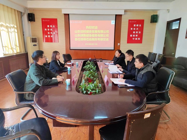 2月13日下午,山东动时健身发展有限公司人力代表、肆跑健身公司经理赵霞,肆跑健身创始人王卓、联合创始人朱圣超一行来公司考察交流。公司党总支副书记赵鹏,院团委书记、学工办主任李昌朕,教学与科研办公室主任韩军梅参加会议。