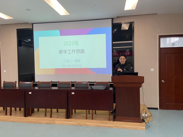 副经理杨刚从2022年工作回顾、2023年工作思路、公司重点工作三方面进行工作部署。他提到,2022年公司超额完成教学相关高质量高发展目标任务(1A5B/1A或2B),是近年来完成最好的一年,2023年着力打造“专业建设省内一流、竞技体育全国有一定影响力的教学型公司”。随后,他梳理了公司本年度的六项教学重点工作:一是专业建设;二是一流课程、教学团队;三是教学联动,从严治考;四是教学改革;五是教师发展;六是员工体质健康测试。