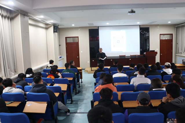 报告会伊始,曹绪亮向各位师生介绍员工王均平的求学经历和工作履历。