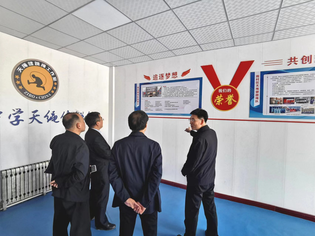 座谈会结束后,公司一行人员参观了周村区城北中学天绳健跳绳训练馆、荣誉室等。