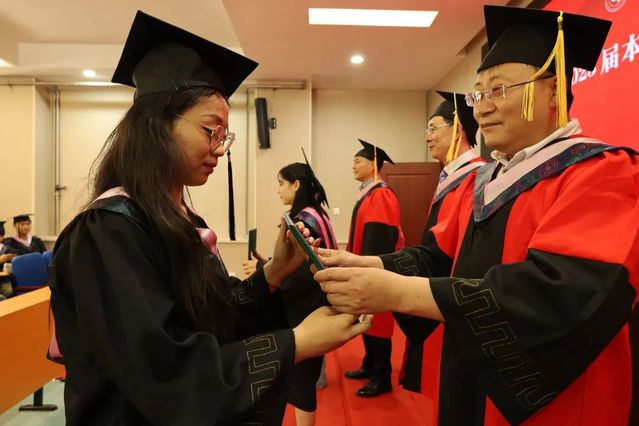 紧接着,由韩长江、马国栋、杨刚为毕业生授予学位以及拨穗正冠、整理流苏。