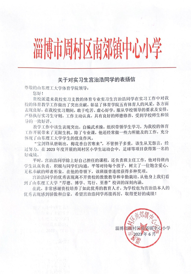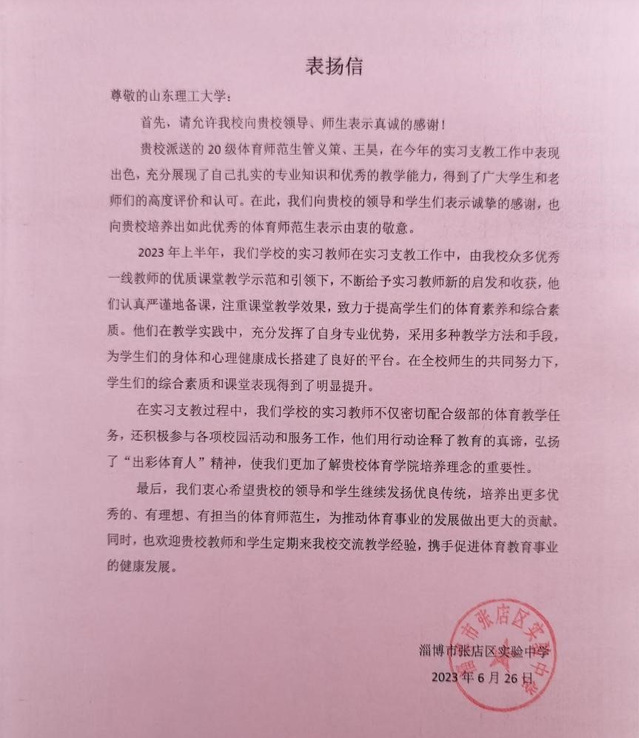 “一分耕耘,一分收获”,努力就会有收获,付出就会有回报。时光易逝,公司2020级体育教育专业实习工作已经接近尾声,在这半年里同学们刻苦认真,展现了出彩体育人的风采,同时公司也收到了数封来自各地的表扬信,让我们一起来看看吧。