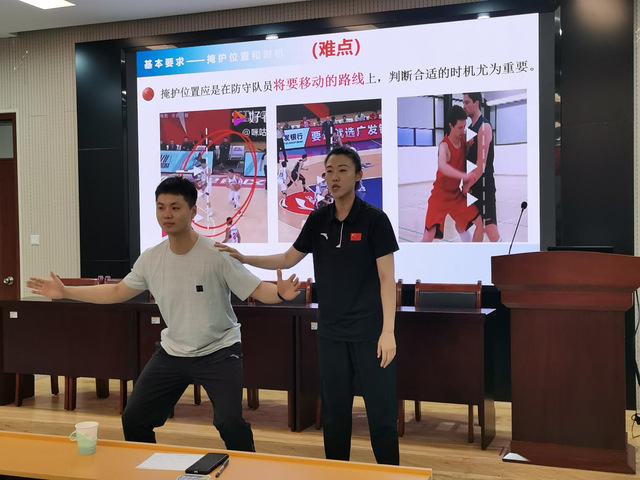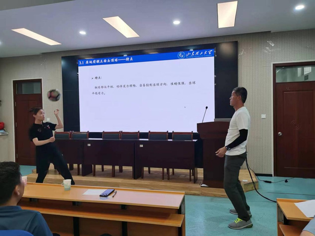 郑程浩、宋著聪、苗舒蓓、张少华四位新进教师按照抽签顺序分别以体育科学研究方法—变量、武术腾空飞脚、篮球进攻战术基础配合—掩护配合和足球头顶球为主题,依次进行试讲。四位青年教师试讲准备充分,PPT制作简洁优美,课堂导入合理,教学方法得当,重难点突出,教学过程流畅,语言表达清楚,注重思政元素的融入和信息技术的运用,教学效果良好。