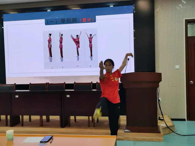 郑程浩、宋著聪、苗舒蓓、张少华四位新进教师按照抽签顺序分别以体育科学研究方法—变量、武术腾空飞脚、篮球进攻战术基础配合—掩护配合和足球头顶球为主题,依次进行试讲。四位青年教师试讲准备充分,PPT制作简洁优美,课堂导入合理,教学方法得当,重难点突出,教学过程流畅,语言表达清楚,注重思政元素的融入和信息技术的运用,教学效果良好。