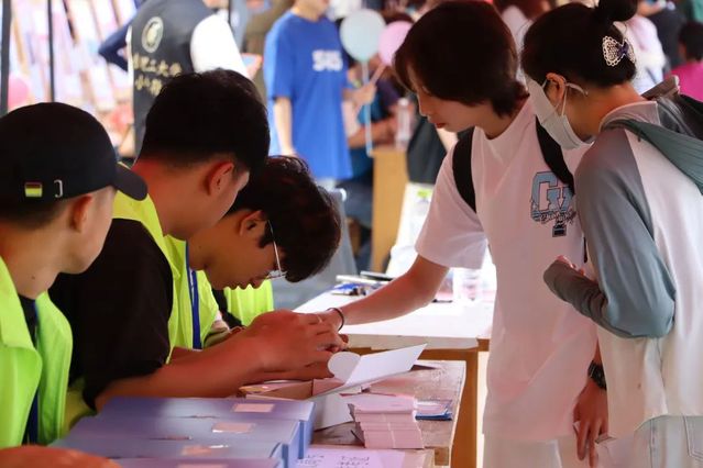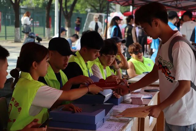 志愿者学长学姐紧锣密鼓的准备着