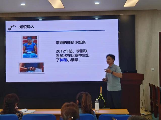 孙粼婧和崔晨两位老师分别以“排球拦网”“网球心战”为主题进行课程展示。孙粼婧结合图片、视频、案例等方式讲授了拦网的基本概念、犯规性质和实际判定。崔晨将网球运动和心理学知识相结合,阐述了赛前、赛中、赛后心态的调整,及其对运动成绩的影响。