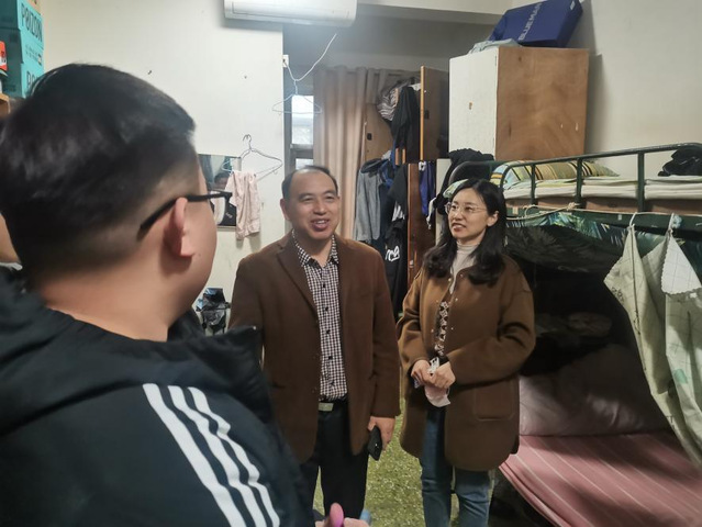 在卫生大扫除活动中,曹绪亮与全体辅导员下沉到所带员工宿舍进行认真检查。对卫生死角清扫、室内地面干净整洁、物品摆放有序、阳台无垃圾杂物、卫生间无污垢、违禁电器等多个方面进行了全面检查,叮嘱员工应遵守公司的相关规章制度,做到“大清扫、全覆盖、广参与、常态化”。同时深入公寓辅导员工作室、党团活动室和考研自习室查看并询问员工学习情况。