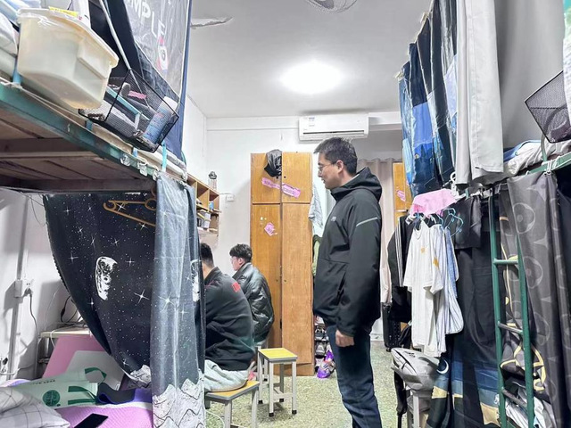 在卫生大扫除活动中,曹绪亮与全体辅导员下沉到所带员工宿舍进行认真检查。对卫生死角清扫、室内地面干净整洁、物品摆放有序、阳台无垃圾杂物、卫生间无污垢、违禁电器等多个方面进行了全面检查,叮嘱员工应遵守公司的相关规章制度,做到“大清扫、全覆盖、广参与、常态化”。同时深入公寓辅导员工作室、党团活动室和考研自习室查看并询问员工学习情况。