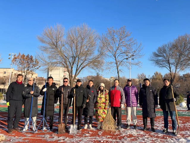 伴着凛冽的寒风,教工党员们戴上手套,拿起除雪工具迅速行动起来。他们无畏严寒,认真、细致的进行清雪、扫雪、铲雪工作。面对厚厚的冰雪,党员教师们发扬了吃苦耐劳、顽强拼搏的精神,大家积极配合,团结协作。虽然天气寒冷,但是挡不住老师们清理积雪的热情,大家挥舞手中的铁锹、扫帚,干劲儿十足。为了让所有师生能够走在干净、安全的田径场内,教工党员们用自己的辛勤劳动为和谐校园贡献了一份力量!
