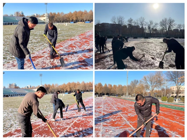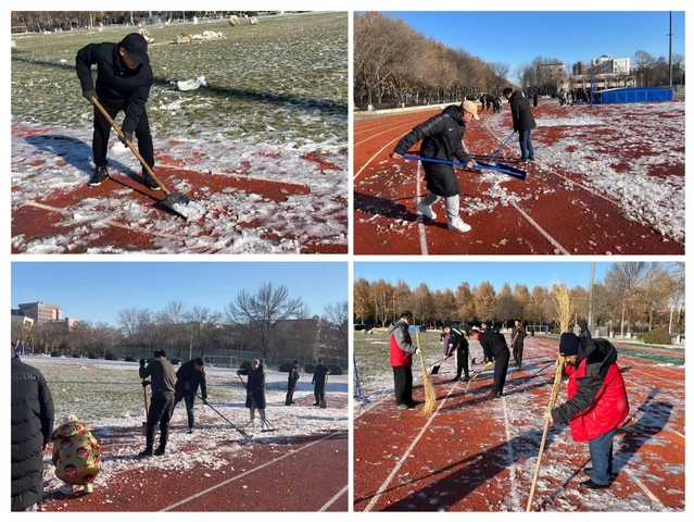 经过辛苦奋战,第二体育场的积雪已清理干净,为师生们的正常工作、学习和生活提供了有力保障。冬日的校园虽然天寒地冻,但老师们的热情就像太阳一样温暖了校园的一片天地!