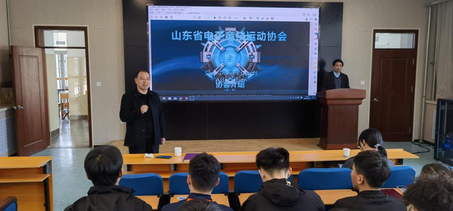 会议伊始,曹绪亮介绍创新创业电竞项目的员工代表、淄博市电子竞技协会会长吴迪的基本情况,并指出电子竞技是当今非常炙手可热的文化产业,希望同学们仔细聆听创业分享,找到属于自己的人生赛道。