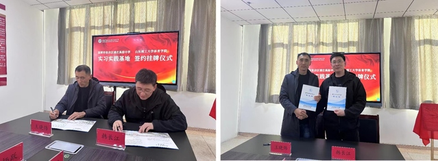 3月22日,我院与张店区潘庄高级中学实习实践基地签约授牌仪式隆重举行。公司党委书记、经理韩长江,党委副书记曹绪亮,副经理杨刚,运动训练系副主任刘云午与张店区潘庄高级中学董事长张太行,执行董事长王晓炜等领导共同参加签约授牌仪式。